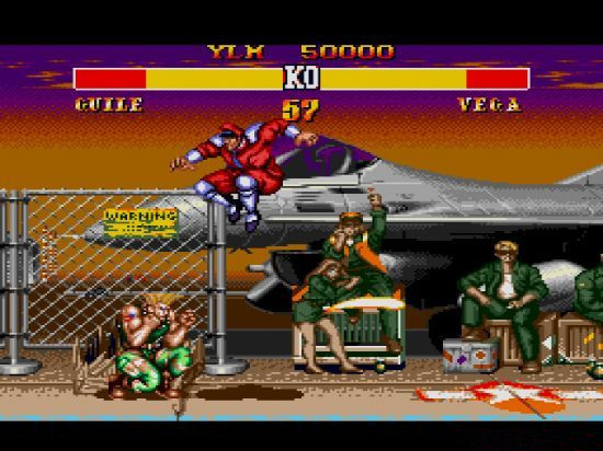 (當(dāng)時各種大賽的冠軍基本上都是選用這倆人物之一,一度被粉絲稱為“兵警之戰(zhàn)”),但總體來講,比街霸2原版好了很多;三是二人對戰(zhàn)時可以選用同一人物,只不過人物顏色不同。