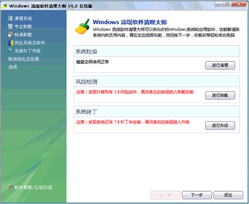點擊流氓軟件檢測功能,流氓軟件清理大師就會自動列出系統(tǒng)里面的流氓軟件,檢測之后按清理就可以。