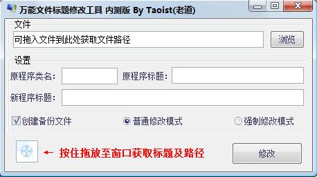老道萬能文件標題修改工具能修改程序標題,強制修改模式可以修改任何程序標題(標題長度可以超出原標題長度)是直接修改文件。修改后無需再打開老道萬能文件標題修改工具,修改時請確保被修改文件沒有運行且沒有被占用。