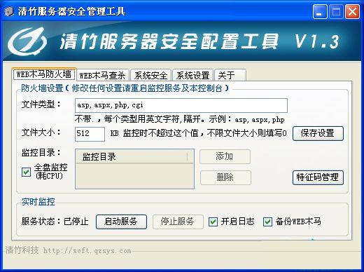 清竹服務(wù)器安全管理工具主要功能有:一鍵設(shè)置服務(wù)器安全,WEB木馬實(shí)時(shí)監(jiān)控,自定義添加特征碼,自定義指定木馬掃描。