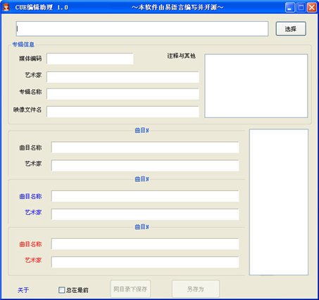 CUE編輯助理幫助你修改無損音頻CUE信息的軟件,直接拖放CUE即可生成列。