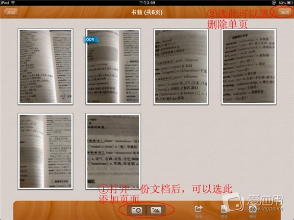 增減文檔內(nèi)的頁面:之前一次性拍攝和導(dǎo)入的圖片會一次性生成一個文檔,如果你需要在這個文檔上作增減,需要進(jìn)入該文檔,再次選中下方的相機(jī)和照片圖標(biāo)來增加圖片。選擇單張圖片,就可以刪除!下面著重介紹文檔整體的歸類和操作。
