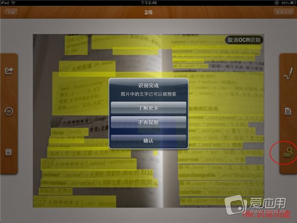 打開某張圖片,在右下側(cè)有個“ OCR ”圖標(biāo),選擇之后,開始對自動對圖片上的文字進(jìn)行識別。而剛才識別的圖片上也會出現(xiàn)“ OCR ”的標(biāo)識。