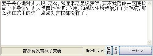 桌面小笑話!可擺放在桌面任何位置!實時顯示各種笑話,提高生活、辦公、心情質(zhì)量,讓您愉快度過每一天,軟件集成幾十萬的笑話,天天開心,長命百歲,逗您沒商量...
