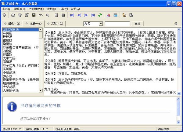 中醫(yī)方劑金典 V1.2.0 綠色版 中醫(yī)方劑金典是一款中醫(yī)藥實用軟件。中醫(yī)方劑金典所錄入的內容主要參考大學教材,達到中醫(yī)專業(yè)本科水平,全面地反映方劑學的內容,可以查看中醫(yī)藥方的方名、出處、分類、組成、方訣、功用、主治、用法、禁忌、方義、化裁、附方、附注、文獻、研究、運用等資料。