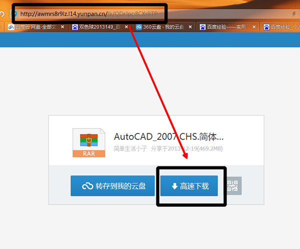 2.新建一個瀏覽器標簽,在瀏覽器地址欄粘貼并打開剛才復制的地址。有心的童鞋就知道了,注意到這是個短鏈接,不同于前面復制的下載鏈接時大長得一串。就得到下面的下載頁面。