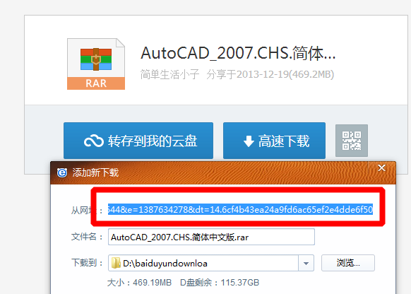 1.首先選中你要離線到百度云的文件,右擊或上面工具里選擇分享文件,彈出一個分享鏈接,再單擊復制鏈接字樣,就將這個鏈接復制下來了。
