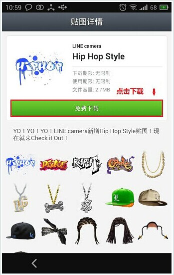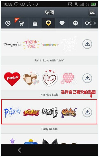 2、在導(dǎo)航中點擊中間那個圖標(biāo),然后選擇你喜歡的貼圖下載。