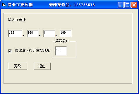 網(wǎng)卡IP更改器,直接更改網(wǎng)卡的IP地址,不用重啟,網(wǎng)卡ip地址更改器小巧實(shí)用,使用十分方便,綠色版