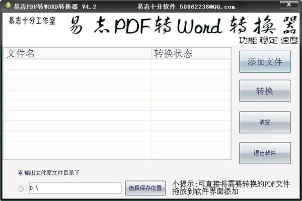 易志pdf轉(zhuǎn)換成word工具 V4.2 綠色版 易志pdf轉(zhuǎn)換成word轉(zhuǎn)換器可以幫你將pdf文檔轉(zhuǎn)換成word文件,減少工作負(fù)擔(dān),支持圖文混合排版。大大的減少工作量。易志pdf轉(zhuǎn)換成word工具是免費(fèi)的。操作簡(jiǎn)單,功能強(qiáng)大,界面整潔。穩(wěn)定高效。