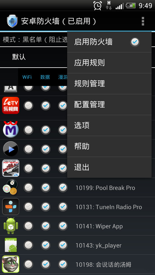 手機(jī)防火墻 Android Firewall是DroidWall的衍生版本,解決部分4.x系統(tǒng)DroidWall無效的問題。付費(fèi)版和免費(fèi)版沒有區(qū)別,僅代表對(duì)作者工作的肯定。