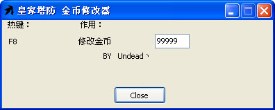 皇家塔防修改器功能:F8 修改金幣為99999