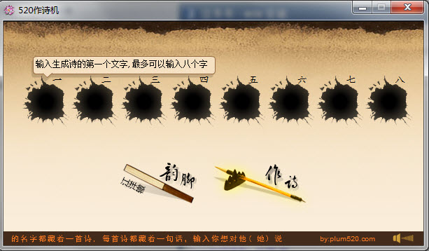 520作詩機:精致別樣的作詩軟件,小巧適用的作詩機器人,絕用戶體驗絕對超出你的想像,把你對她或他想要說的話,又不好直說的話用藏頭詩的方式來表達吧。