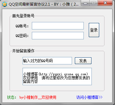 QQ空間最新留言軟件是一款QQ空間半自動(dòng)刷留言軟件.全網(wǎng)最新更新,最新可用,穩(wěn)定高效,是提升空間留言的好幫手!殺軟報(bào)毒!非喜勿下。