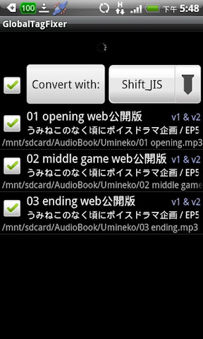 Music Tag Fixer是一款非常強(qiáng)大的安卓音樂亂碼修復(fù)器,它能夠解決你裝置中惱人的音樂標(biāo)簽亂碼問題。 打開此程序選擇預(yù)設(shè)編碼和要轉(zhuǎn)換的歌曲,確認(rèn)下方預(yù)覽標(biāo)簽正確,按下修復(fù),大功告成。