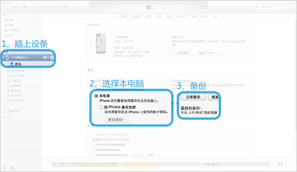 1.打開iTunes,插上設(shè)備。