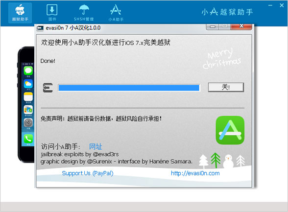 1.打開小A越獄助手自動彈出evasi0n7工具