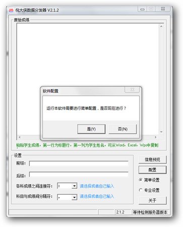倪大俠數(shù)據(jù)分發(fā)器是一款能夠?qū)?shù)據(jù)表中的個(gè)人數(shù)據(jù)進(jìn)行篩選出來,并且調(diào)用飛信程序。模擬手動(dòng)操作自動(dòng)發(fā)送到對(duì)應(yīng)的接收人的軟件,尤其適合班主任教師發(fā)送學(xué)生的考試成績。同樣也適合其他適合用飛信逐個(gè)發(fā)送數(shù)據(jù)的場合。