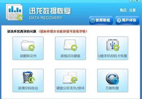 使用迅龍數(shù)據(jù)恢復軟件可以很輕松地恢復刪除的、格式化的、誤ghost、誤分區(qū)等原因丟失的文件??梢哉f迅龍數(shù)據(jù)恢復軟件是目前最好的數(shù)據(jù)恢復軟件,本軟件的幾大特點是:支持所有格式的文件類型恢復、掃描速度極快、恢復效果非常好,能掃描出來的文件都能成功恢復、軟件采用向?qū)浇缑?,易于新手操作?br />
