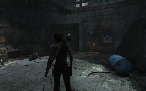 之后傷痕累累的勞拉蹣跚地走出洞穴尋找出路,沿途左手邊有火炬,可以按動作鍵E拾取。