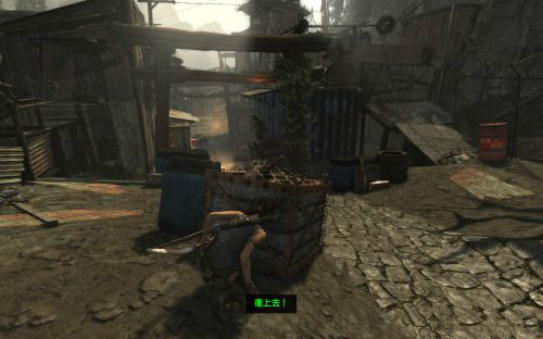 干掉他們前進些許后前方建筑物上也會有敵人出現(xiàn),不過引爆上面的炸藥桶就可以輕易解決了.