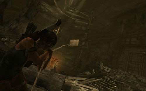 與眾人議論后勞拉決心去山中一探究竟,CG后直走用繩索把門開,扭動開關之后從上面不斷跳上去,