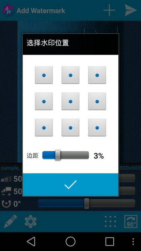 - 要添加水印直接從畫廊按菜單按鈕并選擇“共享”>“添加水印- 圖片分享到Facebook,Twitter,F(xiàn)lickr的等簡單的選擇“共享”行動“保存對話框”。應用程序必須已經(jīng)安裝在設備上。