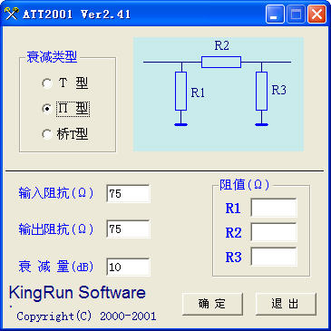電阻衰減器計算工具 制定輸入輸出電阻,衰減量,衰減類型即可