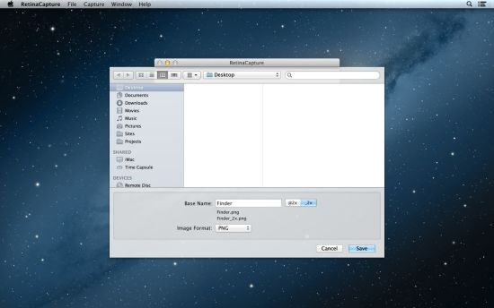 RetinaCaputre 是一款 Mountain Lion 系統(tǒng)下的免費(fèi)應(yīng)用,通過它您可以選擇以 1x 或 2x 或同時以兩種分辨率的進(jìn)行截圖。運(yùn)行應(yīng)用并設(shè)定完成后便可以選擇4種截圖模式:正常截圖、定時截圖、選擇性截圖、窗口式截圖。截圖文件格式可以是 PNG、JPEG 或者 TIFF,此外該應(yīng)用還提供兩種命名方式(@2x 和 _2x)以便于識別不同分辨率的截圖文件。