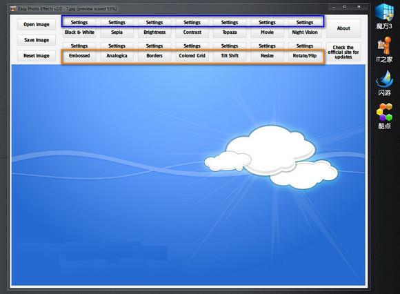 Easy Photo Effects是一款免費的圖片濾鏡效果添加軟件。Easy Photo Effects使用起來很容易上手,而且界面也友好。不可思議的是212KB的Easy Photo Effects處理圖片的效果和PS中使用的濾鏡生成效果的一樣給力。