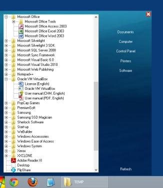 win8開始菜單(Super Start Menu) 1.0.7 官方版 Super Start Menu是一款win8開始菜單,以在你的Windows 8任務(wù)欄最左側(cè)添加一個迷你的開始按鈕,點擊即可出現(xiàn)與傳統(tǒng)開始菜單類似的界面,所有安裝的應(yīng)用軟件都會出現(xiàn)在其中。
