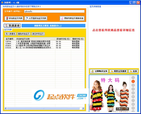 只要你所關(guān)心的寶貝降價或進行促銷,軟件會在第一時間顯示并采用紅色標記出來,可以直接點擊軟件中的購買按鈕去淘寶購買。支持所有快遞公司的快速查詢。支持淘寶商品比價功能,支持淘寶同類商品比較查詢。淘寶購物必備工具軟件。用戶反饋:能搜藏保存我喜歡的東西,還不用登陸淘寶賬號,而且里面有一鍵查詢所有寶貝最低價格,連商家促銷,打折等等的最低價格立馬就顯示了,如果降價了還顯示紅色(好在我不是色盲),現(xiàn)在我們每天的工作就是上班就打開它,點一下看看有可買的沒。還支持快遞查詢,真是很方便。