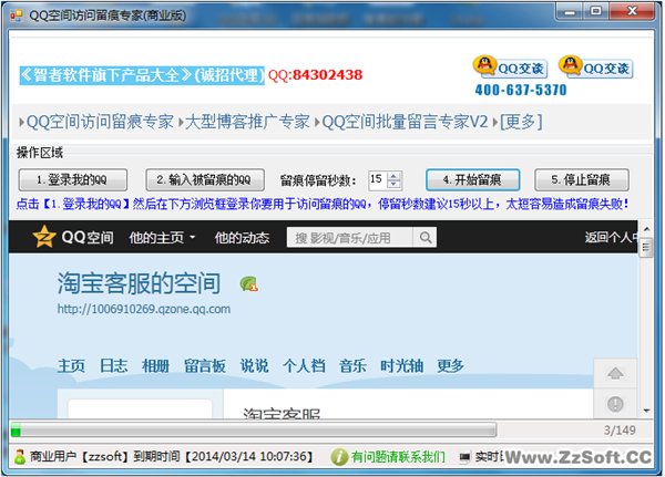 QQ空間訪問留痕專家是智者軟件出品QQ類營銷的新一代利器,主要功能是不斷的去訪問別人的QQ空間,留下痕跡(最新訪客),以達到讓對方回訪的目的,可利用QQ空間進行廣告、產(chǎn)品的宣傳!支持長期掛機使用!