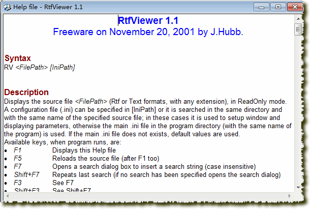 RtfViewer是一個輕量級的應(yīng)用程序,旨在為您提供一種打開 rtf 格式文件的簡單方法。要使用它之前,您必須在命令提示符窗口中輸入下面的語法: RV.exe [IniPath]。 RtfViewer能查看RTF的內(nèi)容但是您不能編輯 RTF 文件。