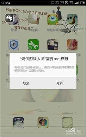 1、首先打開(kāi)燒餅游戲大師,小伙伴們會(huì)發(fā)現(xiàn)需要root權(quán)限,如果沒(méi)有root權(quán)限的朋友先進(jìn)行師一鍵root哦!然后有了root權(quán)限就可以點(diǎn)擊允許!