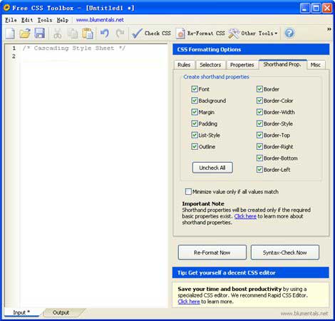 Free CSS Toolbox 包括了一些工具,用于快速跟蹤和增強(qiáng)發(fā)展的樣式表代碼,如先進(jìn)的 CSS格式化和 CSS驗(yàn)證。