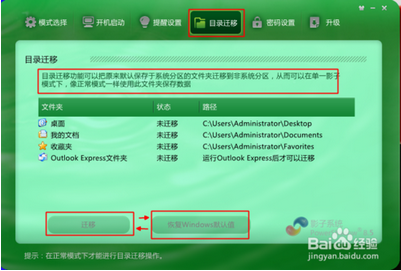 目錄遷移:遷移目錄后單一模式下可以保存一些基本信息等。