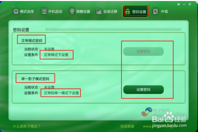 1模式選擇:正常模式、單一模式、完全模式。三種模式保護范圍不同,正常是不保護,單一是保護系統(tǒng)盤,完全是保護全部分區(qū)。