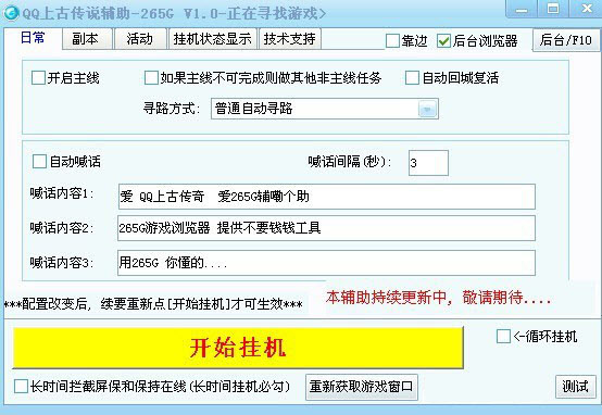 265G上古傳說輔助完全模擬按鍵操作,不修改任何游戲數(shù)據(jù)和封包,上古傳說是一款大型即時(shí)制RPG純武俠類角色扮演網(wǎng)頁游戲,整款游戲具有中國傳統(tǒng)文化的中國古代神話背景和精美寫實(shí)的場景,體驗(yàn)游戲歷史情節(jié),讓你盡情享受穿越所帶來的刺激體驗(yàn)和快樂。