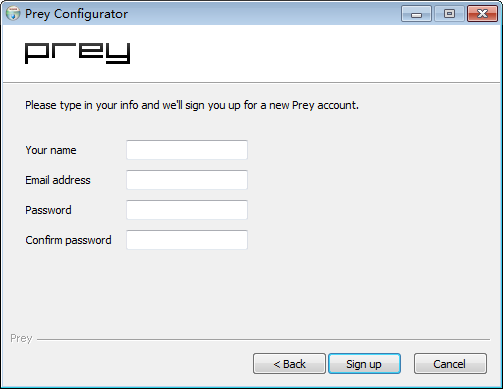 5.點選”New User”來注冊一個帳號吧!如果你已經(jīng)有Prey帳號的話,點選”Existing User”來進行登入。
