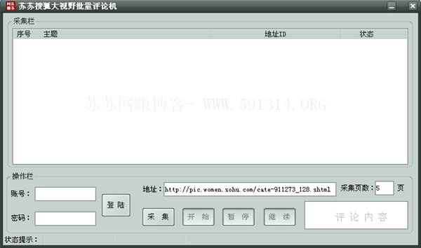 使用本軟件,可以在搜狐女人大視野頻道下的圖片庫下進(jìn)行批量留言引流(都是大尺度性感圖片),大家都應(yīng)該知道看這些美女圖片的基本上是什么人了,所以說引到的流量也算是比較精準(zhǔn)的,是一款非常有效率的搜狐大視野批量評留言軟件,實(shí)在是推廣必備。