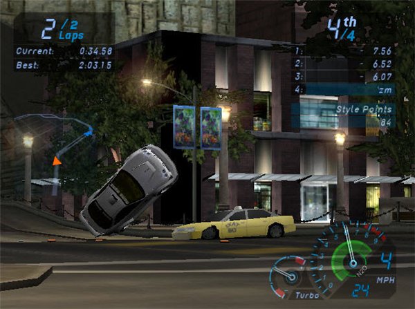 注:起步時賽車可能會左右搖晃,不要管它,它會自動修正。在躲避過路車時只要輕點方向即可換道。在開始時會經(jīng)過一座橋的那個賽道中,賽車過橋后會飛起一段時間,在賽車飛躍的過程中最好保持馬力在9左右,并且不要開N2O,否則輕則落地后速度慢,重則blown engine。