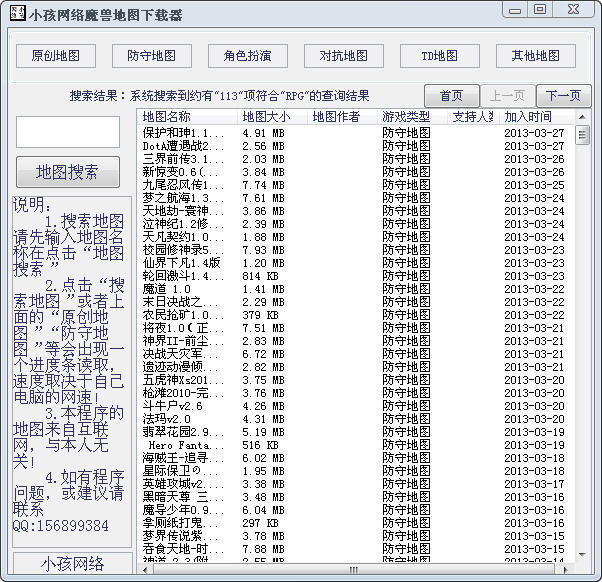 小孩網(wǎng)絡(luò)魔獸地圖下載器 1.0 綠色版 魔獸地圖下載工具,可以下載到最新的魔獸地圖,右鍵點(diǎn)擊地圖名稱可以查看地圖簡(jiǎn)介。
