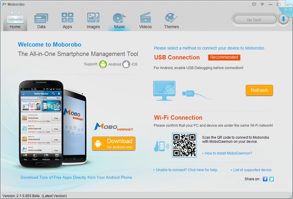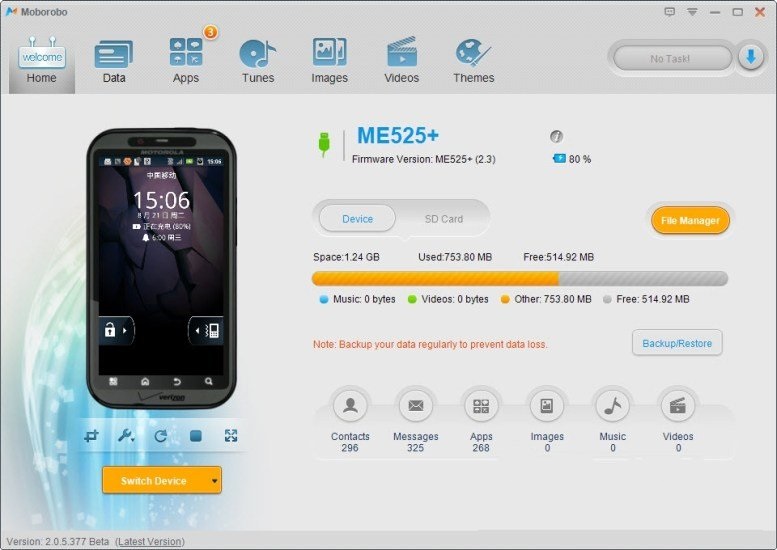你可以把Moborobo看作是豌豆莢和iTools的結(jié)合體,如果你同時擁有android和ios這兩種不同操作系統(tǒng)的手機,那么你可以使用Moborobo管理你的通訊錄、圖片照片、應用等。但是對于擁有91手機助手、騰訊手機管家、豌豆莢等優(yōu)秀手機管理工具的中國用戶來說,Moborobo是一款比較雞肋的手機管理軟件,而且它沒有中文語言界面,大大影響了國內(nèi)用戶的使用體驗。【功能介紹】