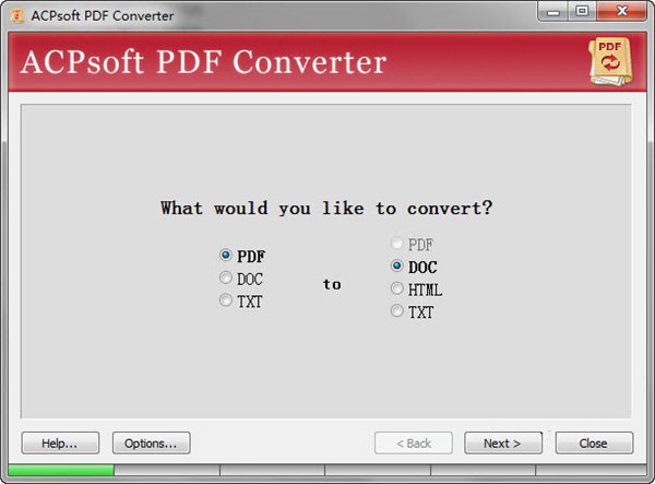 多功能PDF轉(zhuǎn)換器(ACPsoft PDF Converter)是一款免費(fèi)的多功能 PDF 轉(zhuǎn)換器,可以將 PDF 轉(zhuǎn)換為 DOC、HTML、TXT 等格式,還可以當(dāng)作 Word to PDF 轉(zhuǎn)換器使用,將 DOC 或 TXT 文件轉(zhuǎn)換為 PDF 文件,但僅支持將英文文檔轉(zhuǎn)換為 PDF。