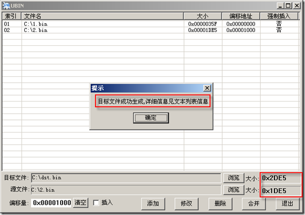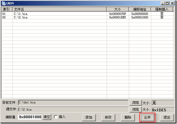 設(shè)置目標(biāo)文件為C:\dst.bin,然后點(diǎn)擊“合并”按鈕。