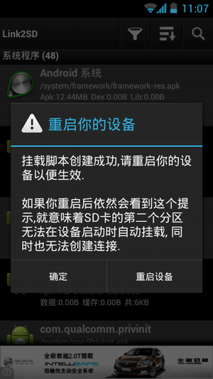 如果你誤操作卸載了Link2sd軟件那些在ext分區(qū)的軟件一樣能夠正常使用,因?yàn)樾遁dLink2sd,掛載腳本不會(huì)自動(dòng)刪除。
