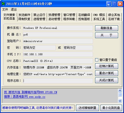 精銳網(wǎng)吧輔助工具是一款網(wǎng)吧輔助軟件,研發(fā)團(tuán)隊(duì)有偶然網(wǎng)絡(luò)技術(shù)聯(lián)盟與精銳聯(lián)盟,它可以解決網(wǎng)吧的權(quán)限和管理設(shè)置等問(wèn)題,是一款在網(wǎng)吧十分實(shí)用的軟件!精銳網(wǎng)吧輔助工具對(duì)于那些限制功能的網(wǎng)吧是相當(dāng)有幫助的工具。