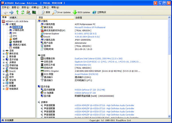 AIDA64原名EVEREST,是專業(yè)測試硬件信息和系統(tǒng)信息的好工具,它針對系統(tǒng)硬件能查探的信息遠(yuǎn)比CPU-Z等專業(yè)硬件檢測軟件豐富,還支持硬件性能測試,可以得出內(nèi)存讀寫速度、CPU超頻速度、硬盤讀寫速度等信息。支持生成系統(tǒng)狀態(tài)報告,即把所有的信息匯總為文檔。