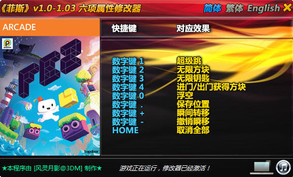 菲斯是一款卡通風(fēng)格像素級(jí)別冒險(xiǎn)游戲,本修改器為玩家?guī)砹?xiàng)屬性修改器。